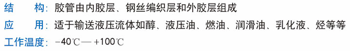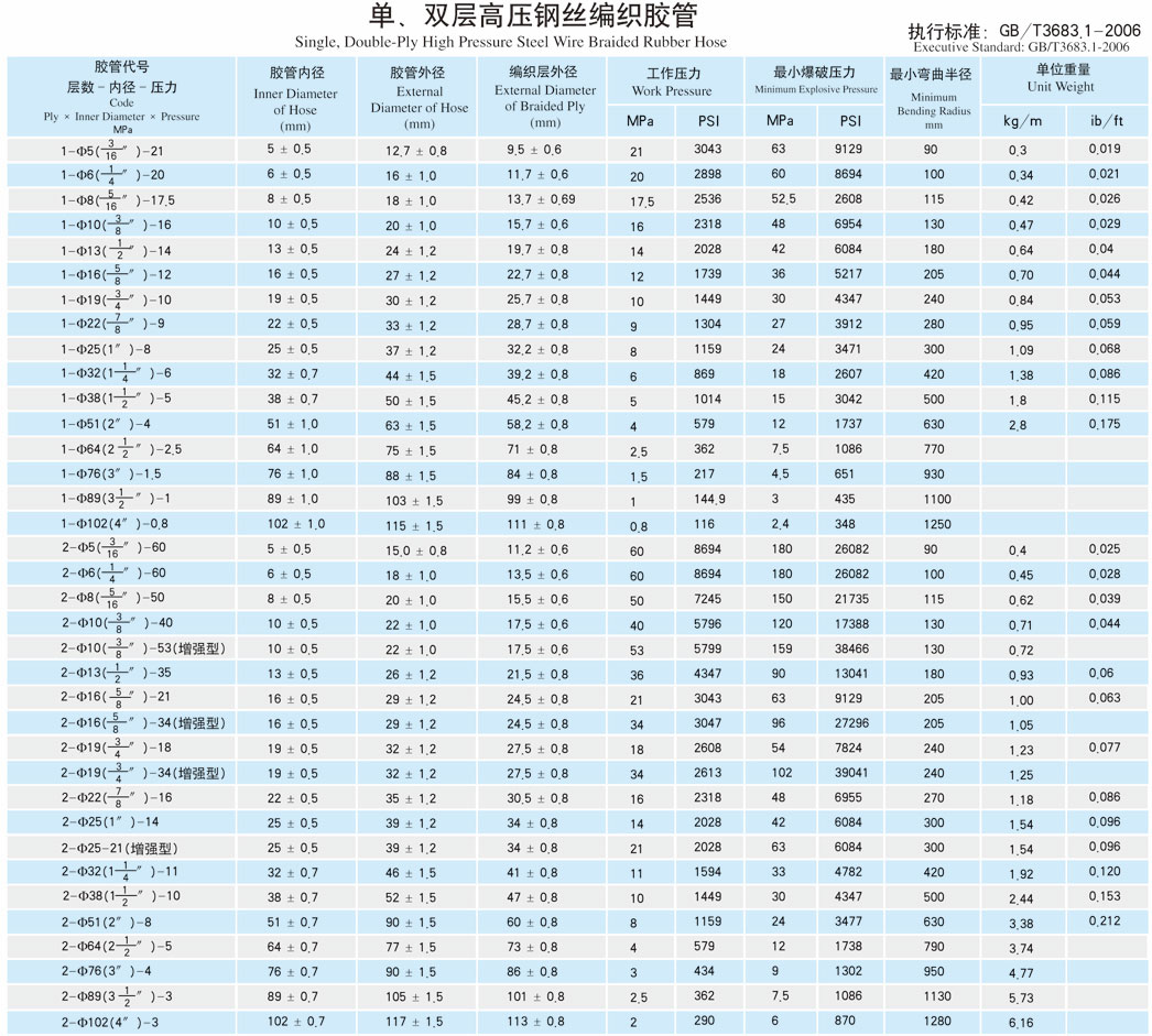 產品名稱:高壓鋼絲編織膠管 產品類別:高壓膠管系列>>高壓鋼絲編織膠管 咨詢電話: 022-27644893 技術參數: