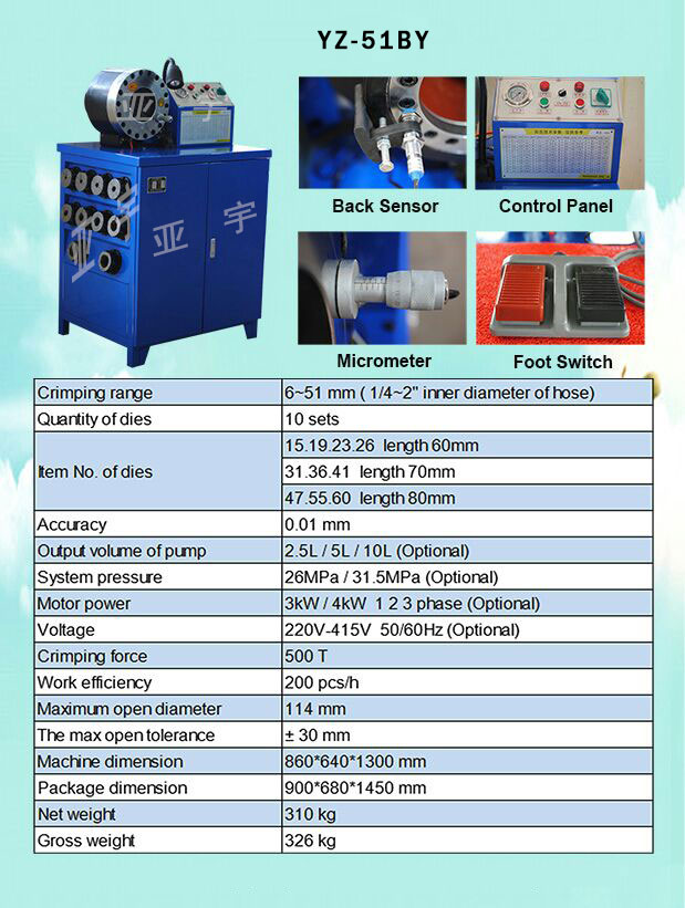 產品名稱:YZ-51BY全自動鎖管機 產品類別:鎖管機系列>>YZ-51BY全自動鎖管機 咨詢電話: 022-27644893 技術參數: