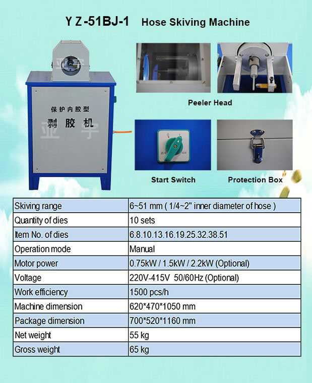 產品名稱:膠管剝膠機 產品類別:鎖管機系列>>膠管剝膠機 咨詢電話: 022-27644893 技術參數: