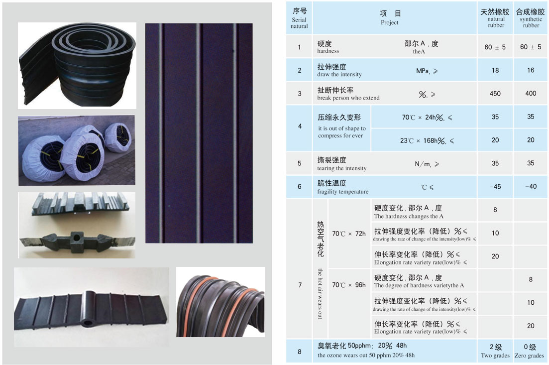 中文名:橡膠止水帶 主要原料:合成橡膠